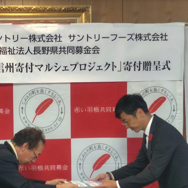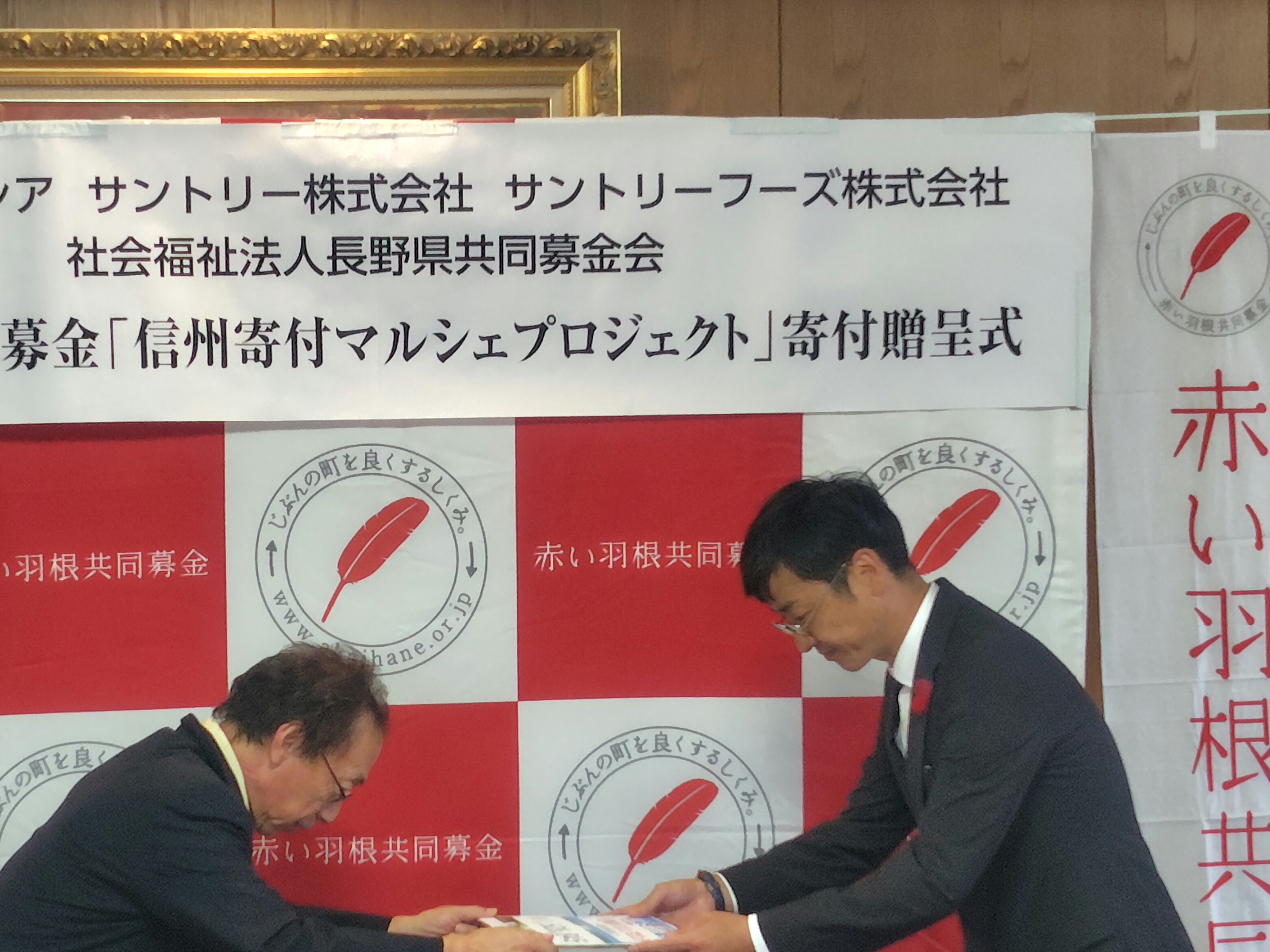 9月25日(木)長野県自治会館で、赤い羽根共同募金「信州寄付マルシェプロジェクト」の寄付贈呈式を行いました。
